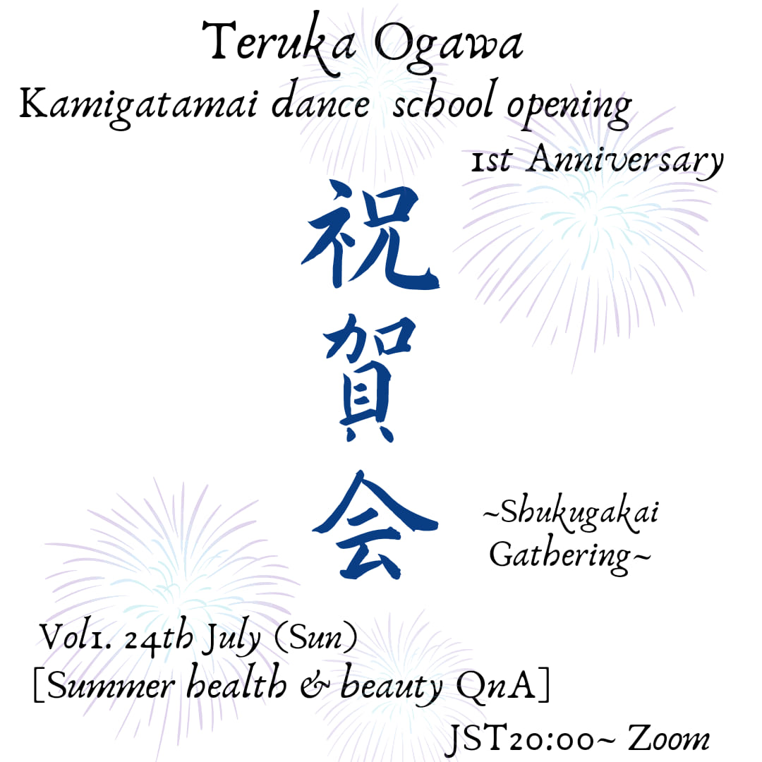 ✨🍾1st anniversary in progress🍾✨.As I posted about parties for the 1st anniversary of my dance classes opening, here are more details of two parties with guest speakers!.~~~~~.○Vol.1:24th July(Sun)JST20:00~22:00「QnA discussion with an acupuncturist about summer beauty and health」..○Vol.2:28th August(Sun)JST20:00~22:00「Phisical care for Japanese style life and Japanese traditional performing artists by a Seitai-massuer」…※On ZOOM※In English & Japanese…How…
